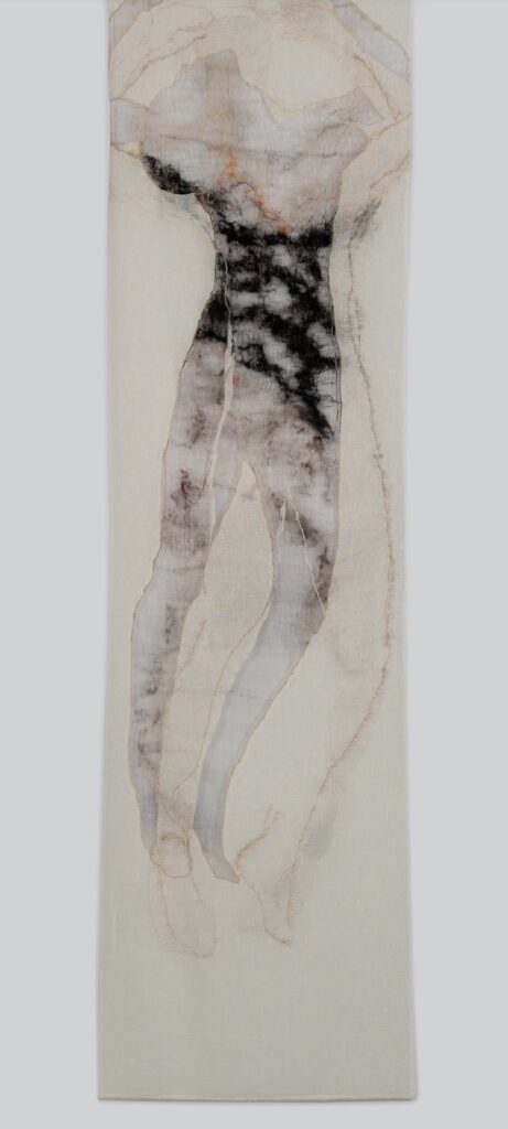 Haar werkwijze begint vaak bij een bepaalde plek. Door te tekenen, notities te maken en te werken met textiele materialen en technieken ontstaat gelaagdheid en betekenis. Verdichten en verlichten gaan daarbij hand in hand, met transparantie, kleur en licht als dragende elementen. Zo ontvouwen zich verhalen die resoneren in zowel monumentale werken als in kleinere, meer intieme formaten. Met deze expositie nodigt Rinske de toeschouwer uit om die resonans van stilte zelf te ervaren.