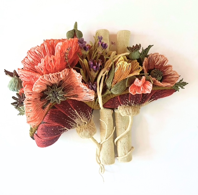 Voor Janis is macramé geen nostalgisch handwerk, maar een daad van verzet. Door bewust de term macramé te gebruiken om haar werk te definiëren, weigert ze de traditie te laten verdwijnen achter neutralere begrippen zoals ‘knopen’ of ‘weven’. Elke knoop ziet ze als een syntaxis van materiaal, een kleine zelfstandige sculptuur. Het repetitieve knopen verandert in een methode om verhalen te vangen die gaan over zorg, duurzaamheid en de dunne lijn tussen fragiliteit en kracht.