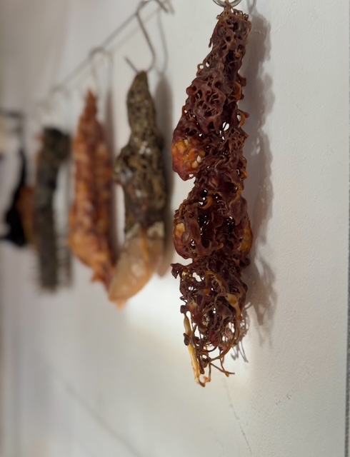 Ria laat zich inspireren door persoonlijke herinneringen en levende organismen zoals diepzeewezens, mossen en plantenwortels. Ze combineert deze elementen tot nieuwe, hybride wezens die zich moeilijk laten definiëren. ‘Dat wil ik ook niet, want ik wil dat iedere kijker zijn eigen invulling kan geven. Het denken en handelen van de mens, en de manier waarop we naar de natuur kijken, fascineren me.’ Zo nodigt Ria de kijker uit om haar wezens een persoonlijke interpretatie te geven.